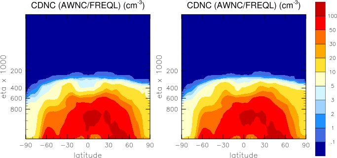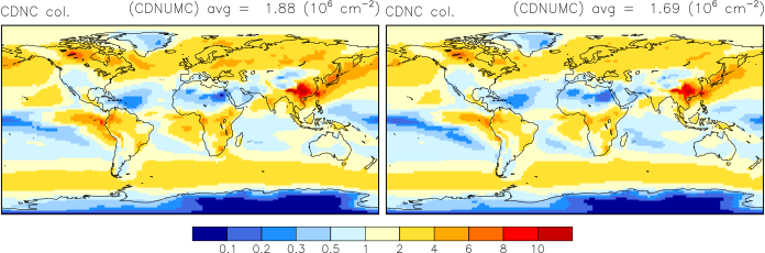 Note: Due to different definitions neither effective cloud dropet radii, cloud droplet concentrations nor vertically integrated cloud droplet concentrations are directly comparable between CAM4-Oslo and CAM5-Oslo